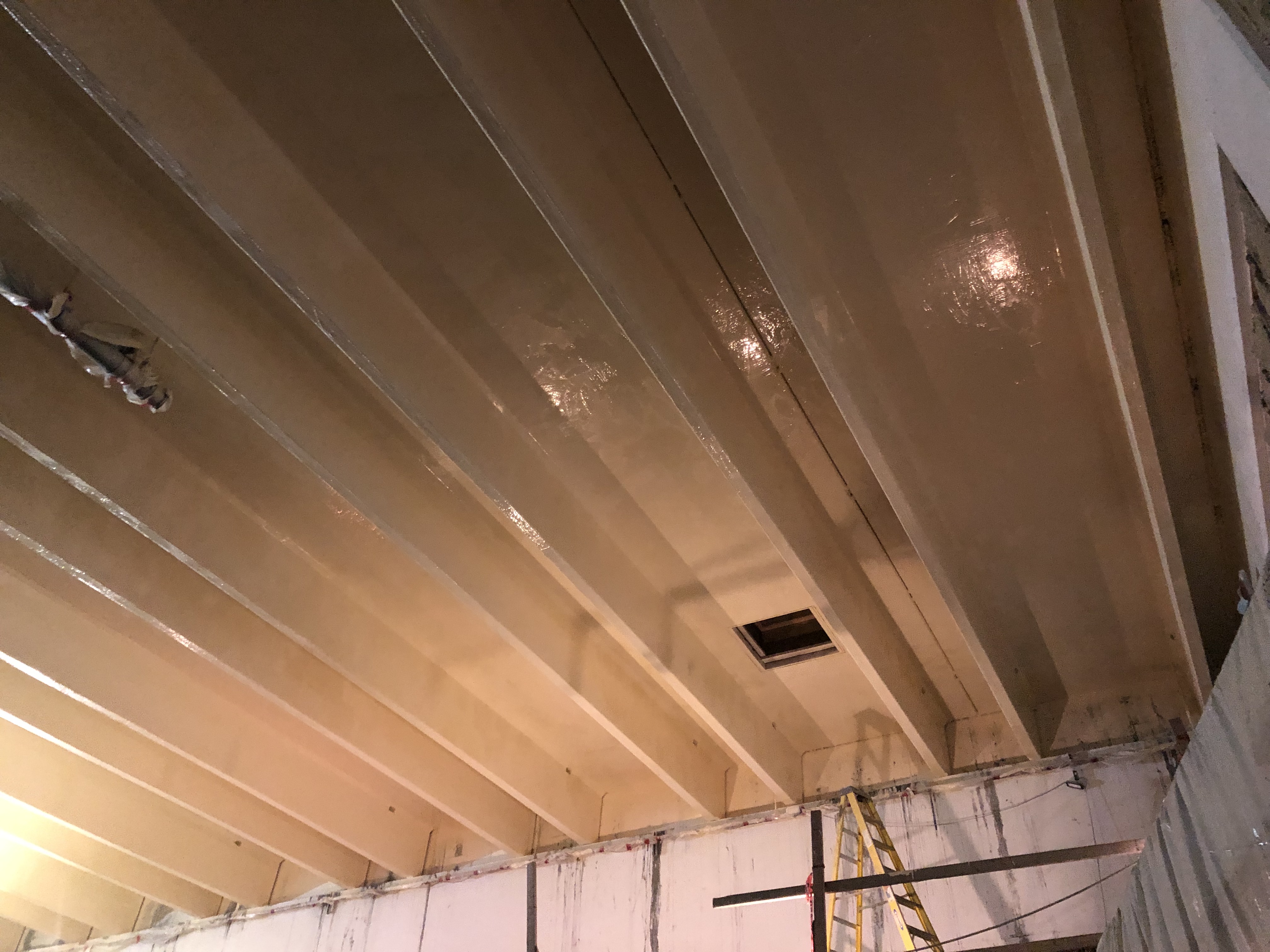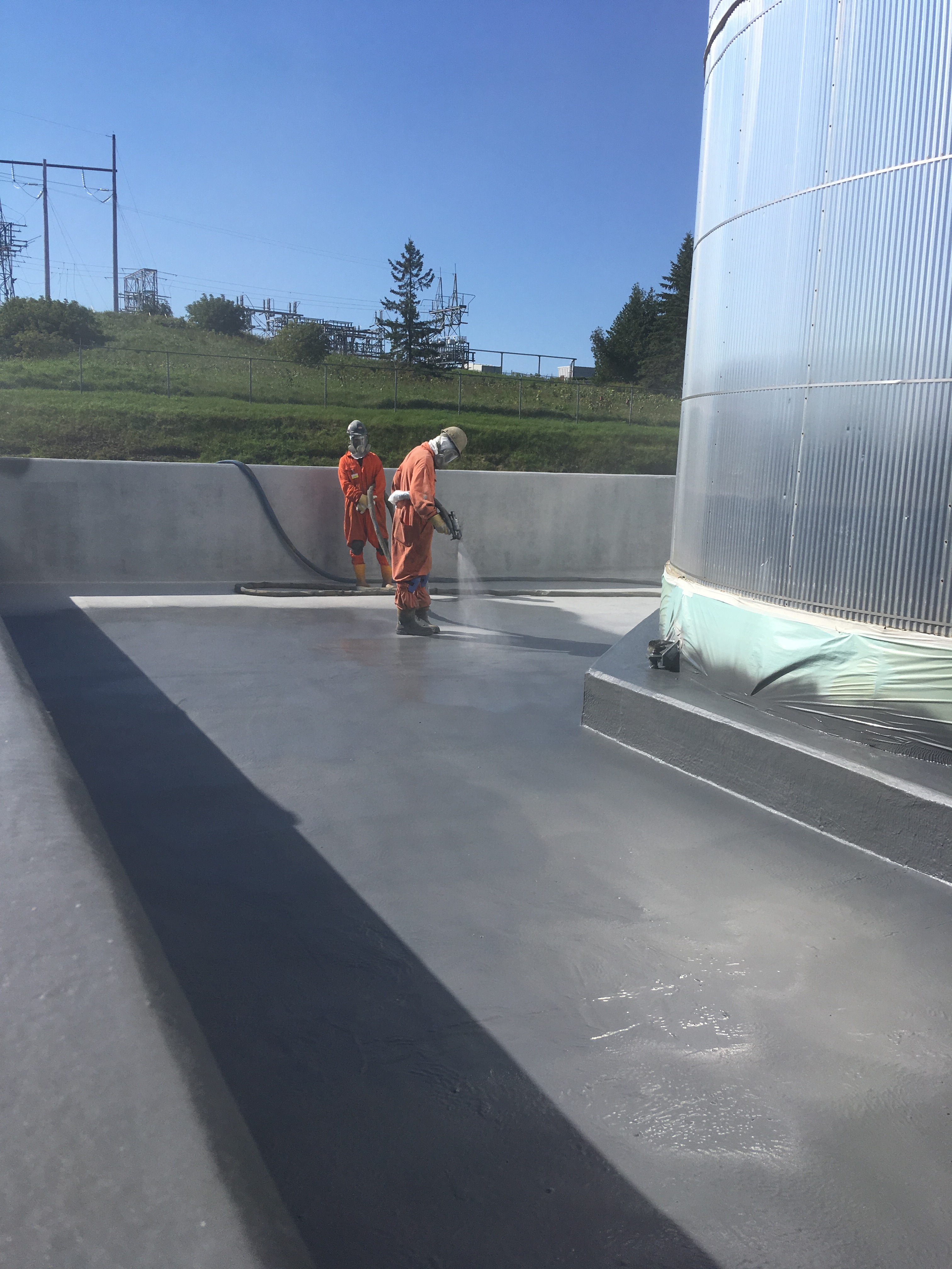 Application d’une couche de finition de membrane Polyuréa/Polyuréthane 100 mils